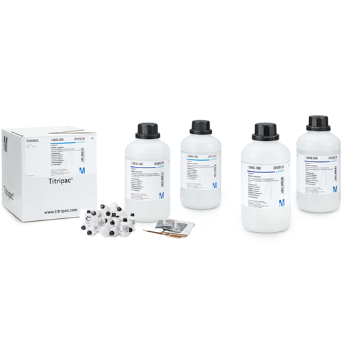 The boric acid/potassium chloride/sodium hydroxide Certipur® buffer solution is gravimetrically prepared using high-quality reagents. It is quality controlled and qualified in an ISO/IEC 17025 accredited calibration laboratory. Its pH value of 10.00 at 20°C is analyzed using a combined glass electrode. The pH qualification is based on 5-point calibration method, in accordance with DIN 19268, against certified primary reference standards as per DIN 19266, IUPAC, NIST, USP, and Ph. Eur.