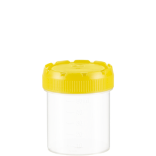 Tube 70 ml, 55 x 44 mm, transparent polypropylene, assembled yellow cap