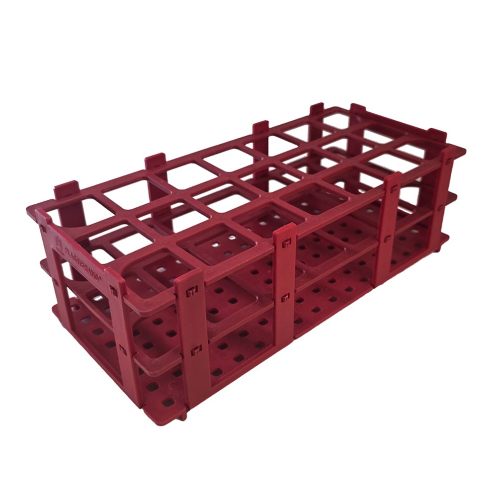 Sturdy construction, stackable. Versatile and inexpensive racks for common diameter test tubes. Filled PP, density 1.2 g/cm3. Will not float in water bath. Alphanumerical positions for clear sample identification. Wide spaces between positions. Operating temperature -20 to 90 °C. Autoclavable (121 °C). Racks are supplied in three-pieces for convenient and permanent assembly.