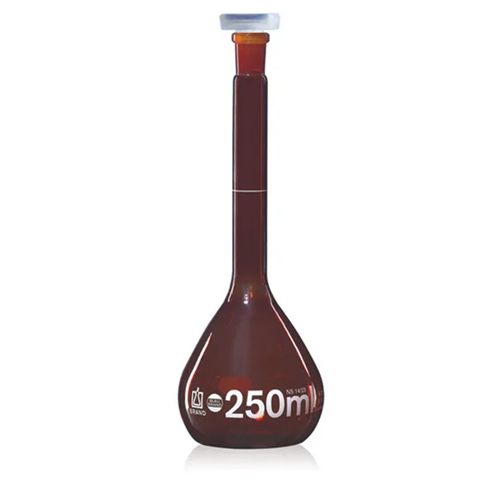 Vol. flask amber BLAUBRAND class A, 10ml, Boro 3.3, NS 10/19, PP-stopper / PK 2
