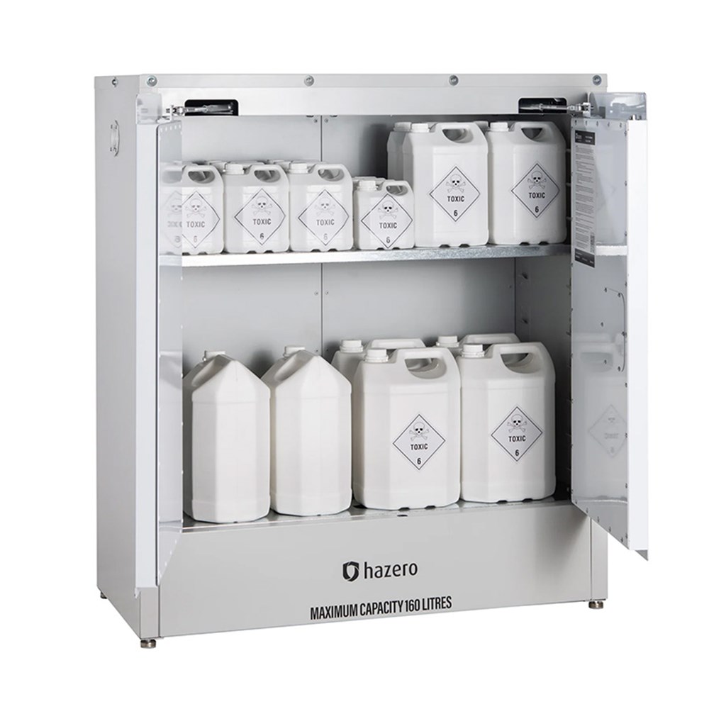 Every business or facility has different needs when it comes to managing Class 6 liquids. Upright with double doors the well thought out design provides the option of storing drums and/or small containers – whatever works best. They’re fully bunded, for extra assurance. Stock can be seen at a glance. This minimises the risk of theft and makes re-ordering easy – saving time and improving workplace efficiency.