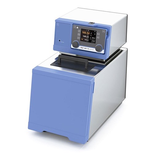 Heating bath circulator, 7-10 l, HBC 10 controlThe HBC 10 control heated bath circulator heats up to a max. temperature of 250 °C. It has a high quality stainless steel bath with a volume of 7.5 – 10.5 liters. The TFT display is in color and illustrates all relevant parameters. With just one key, the internal temperature regulation can be switched to external temperature regulation. The large surface of the radiator allows for an optimum heat exchange and a gentle heating process of the medium. Push and turn buttons allow for intuitive menu navigation. The menu comes in different languages. The bath has a front drain valve for safe emptying. In order to drain the system, a hose is connected so there is no direct contact with the tempering fluid. With the unique WiCo Wireless Controller, the unit can be operated from a distance of up to 10 meters/3 ft.