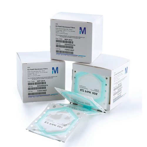EZ-Pak® Membrane Filter mixed cellulose esters (MCE), pore size 0.45 µm, filter diam. 47 mm, black filter, gridded filter, suitable for bioburden testing, input: bottled water, beverage(s)