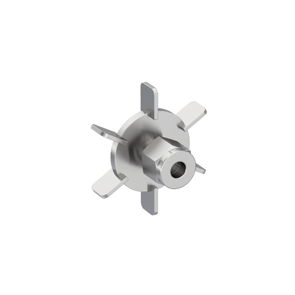 The Rushton 6-blade segment impeller, designed for 5-liter vessels, is mounted on the stirring shaft. Additionally, the position of the Rushton impeller on the shaft can be easily adjusted, allowing it to be tailored for your different process requirements.