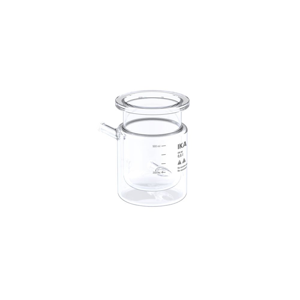 Autoclavable, double-wall glass vessel (borosilicate glass 3.3) with a working volume of 250 ml l to 500 ml. The total volume is 800 ml.
