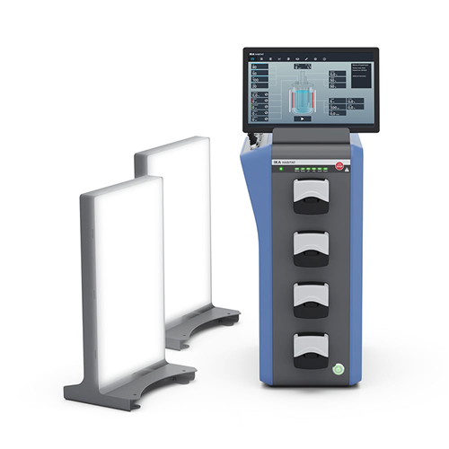 The integrated PID control ensures precise temperature regulation at all times, regardless of vessel type (single-wall or double-wall) or fill level. Single-wall glass vessels can be heated with a heating blanket, allowing for accurate temperature settings above room temperature. With the optional use of a cooling finger, it is also possible to achieve temperatures below room temperature. For double-wall vessels, in combination with an IKA thermostat, the temperature range can be freely adjusted between 5-80°C, independent of room conditions or heat generated by the culture itself.