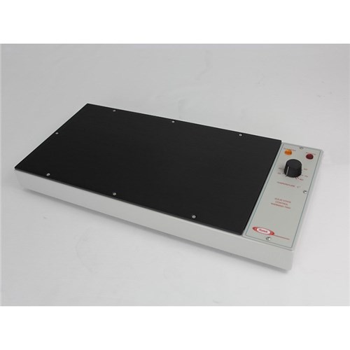 This slide warming tray has a 450 x 250 mm. anodised aluminium heating plate mounted on a powder coated steel base. Use of a one piece pad type element bonded to the heating plate ensures that an even heat is maintained within the working area of 400 x 200mm. Temperature setting is by an analogue control on the front panel, with indicators for power on, and heating on. The WT1 has a temperature range of approximately 28°C to 80°C (min 5°C above ambient) and can be used for a variety of purposes. For safety a thermal cut out is fitted, this will remove power to the element in the event of overheating due to control failure.
