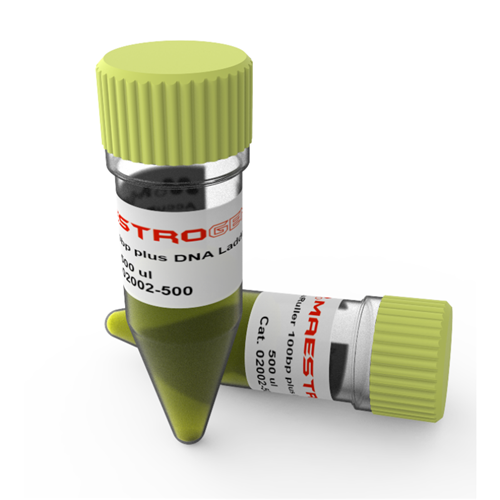 The AccuRuler 100 bp Plus DNA RTU Ladder is suitable for sizing linear double-stranded DNA fragments from 100 bp to 3,000 bp. The 500 bp and 1,500 bp bands have increased intensity to provide internal orientation. The mass of DNA in each band is provided (assuming a 0.5 μg/ 5 μl load) for approximate quantification in comparably intense samples of similar size.