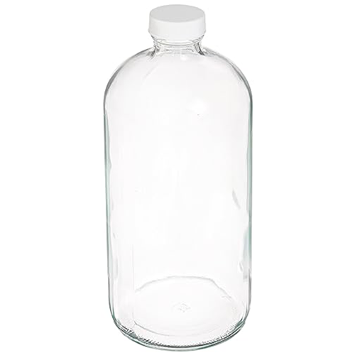 32 oz, 1000mL Clear Boston Round, 94x206mm, 33-400mm Thread, White Closure, PTFE Lined PK 12