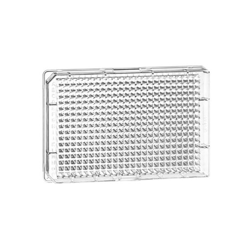 - Compared with the 96 well standard microplate, the number of wells is quadrupled in this microplate, combined with a volume reduction from 382 µl to 138 µl